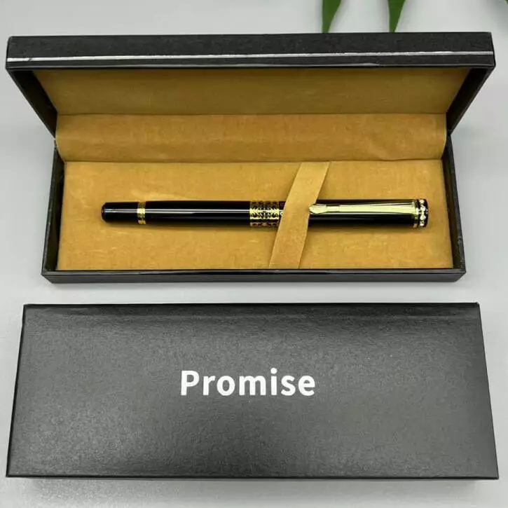 Подарочная ручка Promise — это сочетание изысканности и классического стиля. Черный корпус украшен декоративными золотыми элементами с утонченным узором, что делает эту модель особенно элегантной и статусной.
