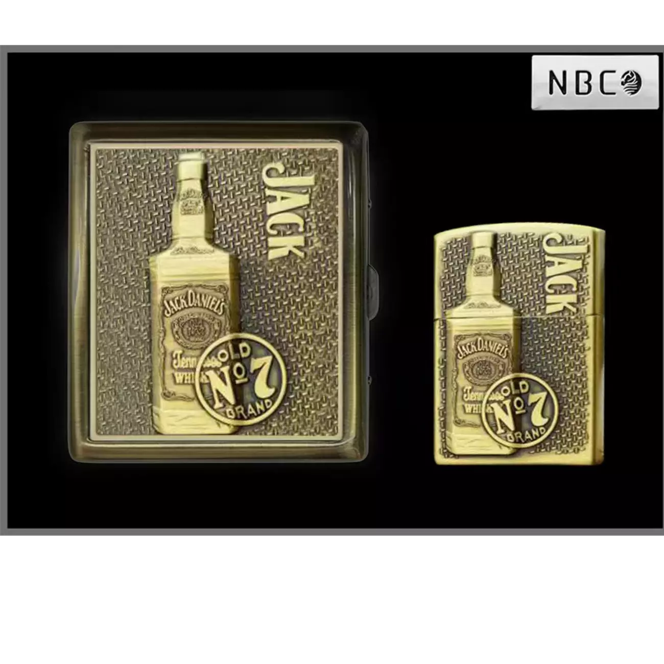 Оригинальный подарочный набор, состоящий из металлической газовой зажигалки и портсигара, выполненных в едином дизайнерском стиле. На обеих поверхностях рельефно изображена бутылка Jack Daniel’s Old No. 7 — знаменитого американского виски.