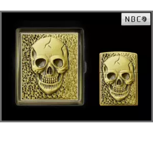 Оригинальный и дерзкий подарочный набор, состоящий из газовой зажигалки и портсигара, выполненных в едином стиле. Центральный элемент дизайна — объёмный рельеф черепа на текстурированном фоне, символизирующий брутальность, силу и бесстрашие.