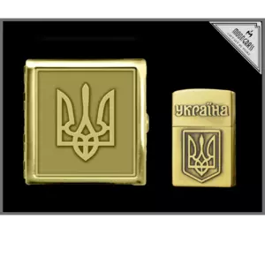 Подарочный набор: портсигар и зажигалка с гербом Украины