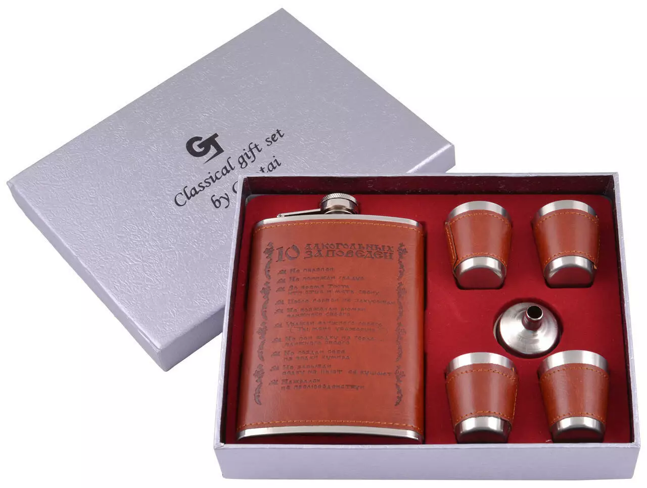 Подарочный набор- Фляга 10 Алкогольных Заповедей (Обьем: 265 мл / 9 OZ)