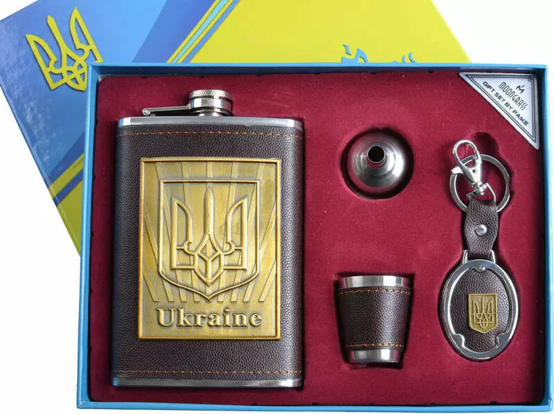 Подарочный набор с Украинской символикой "Moongrass" 4в1 Фляга, Брелок, Рюмка, Лейка DJH-1097