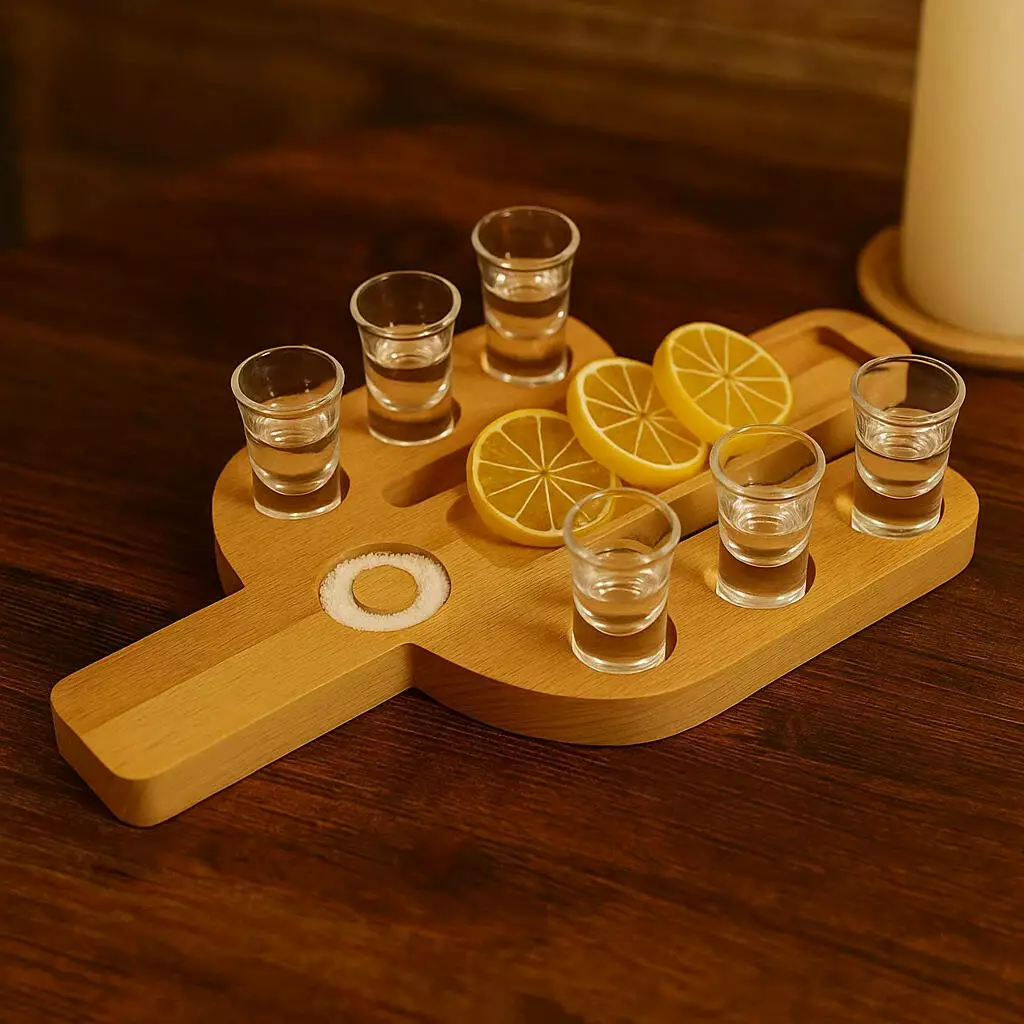 шотов, лимона и соли. Изготовлен из прочного бамбука, он вмещает до
