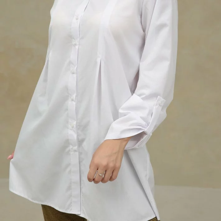 7/8 на хлястику, який можна розстебнути. У цій сорочці ви будете
