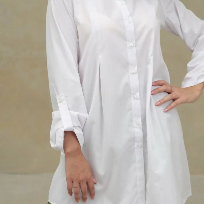 7/8 на хлястику, який можна розстебнути. У цій сорочці ви будете