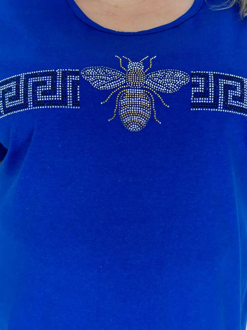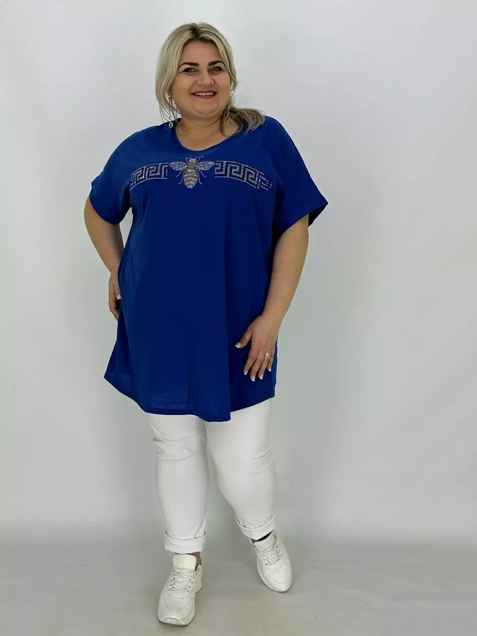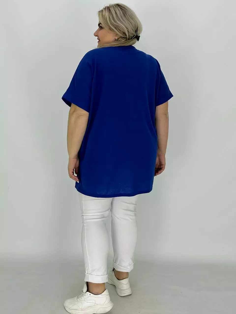 Подовжена футболка з турецького трикотажу супрем з гарною розтяжністю, прикрашена якісною камінною накаткою.