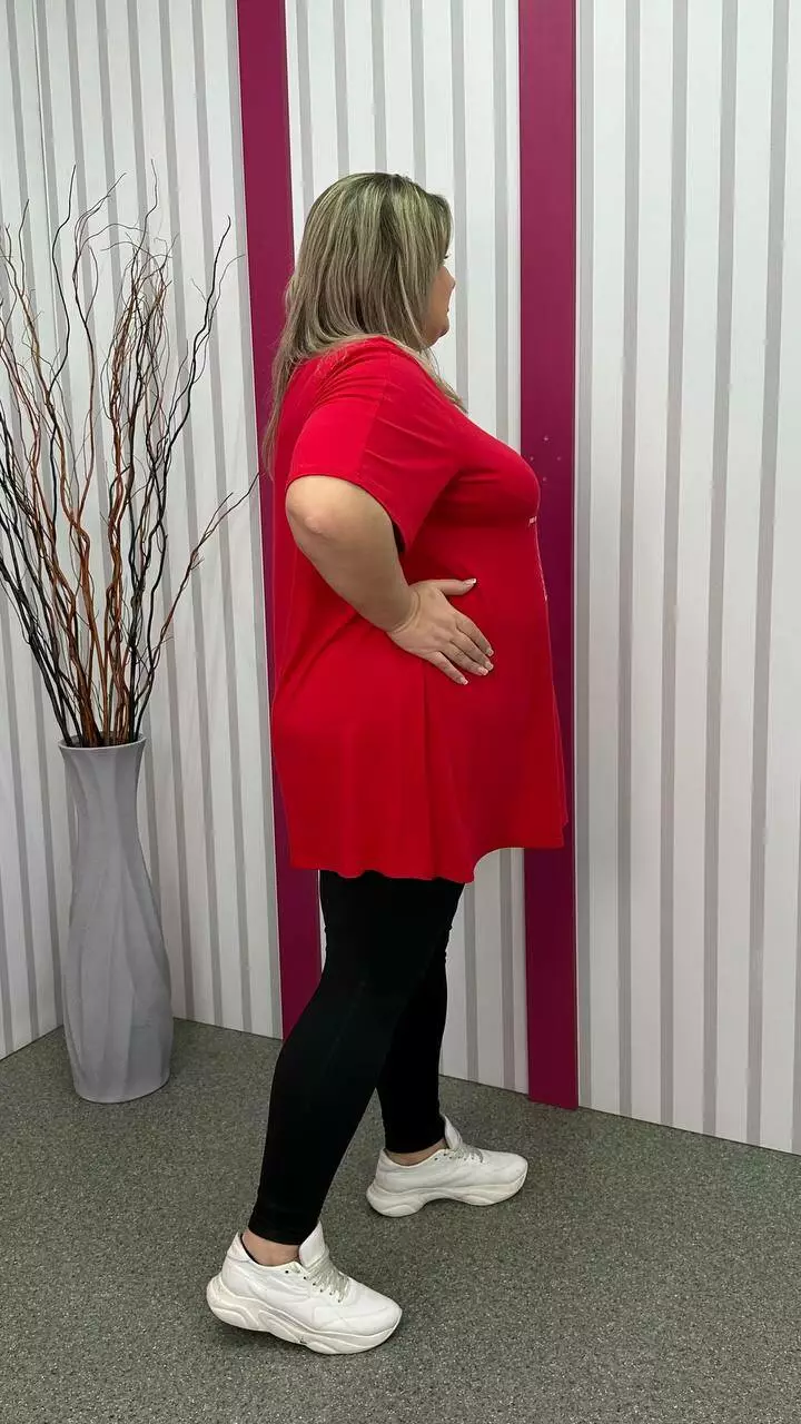 Розкльошена та подовжена футболка з трикотажу віскоза виробництва Туреччина. Легка, м'яка тканина з гарною розтяжністю, не кашлатиться. Силует-трапеція, рукав втачний, горловина мисик, прикрашена якісним накатом.