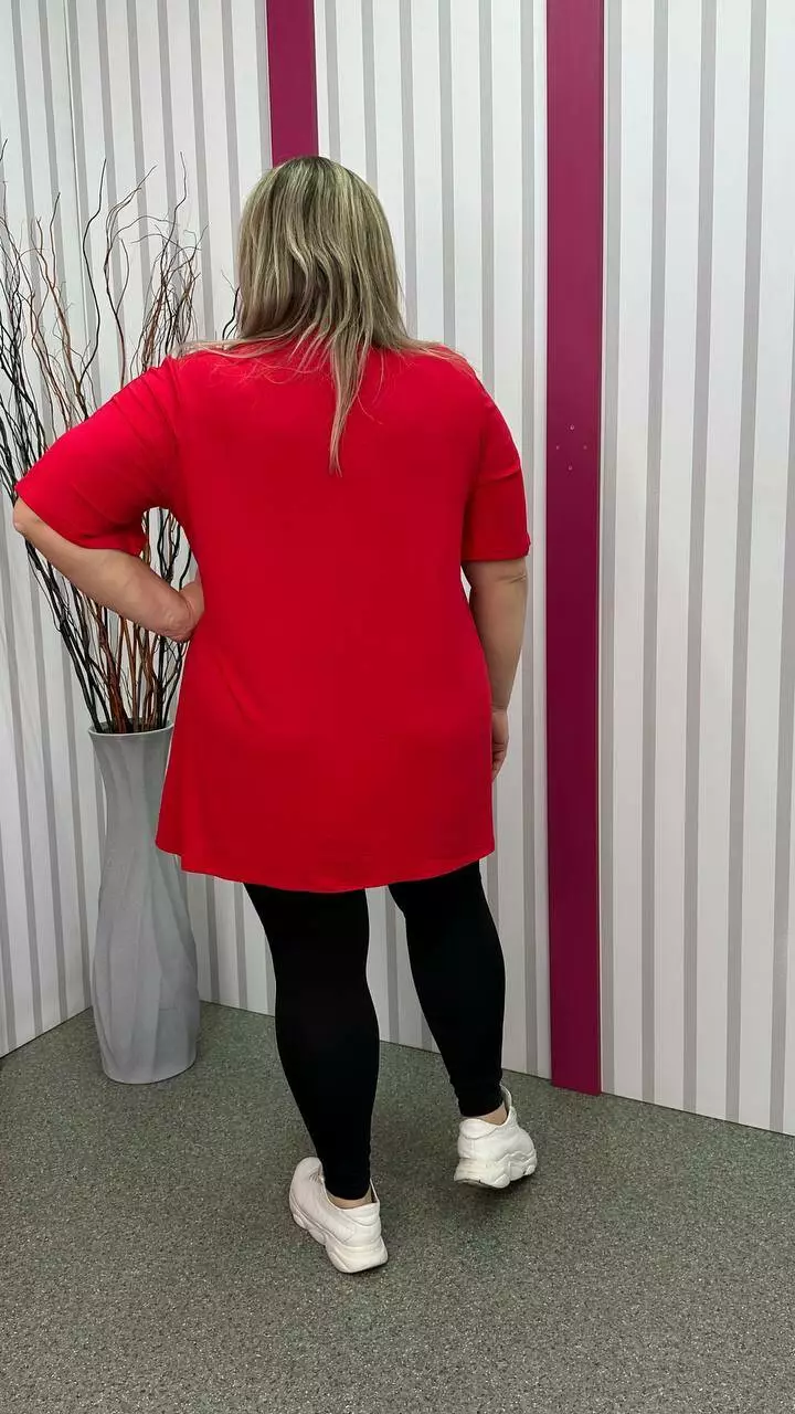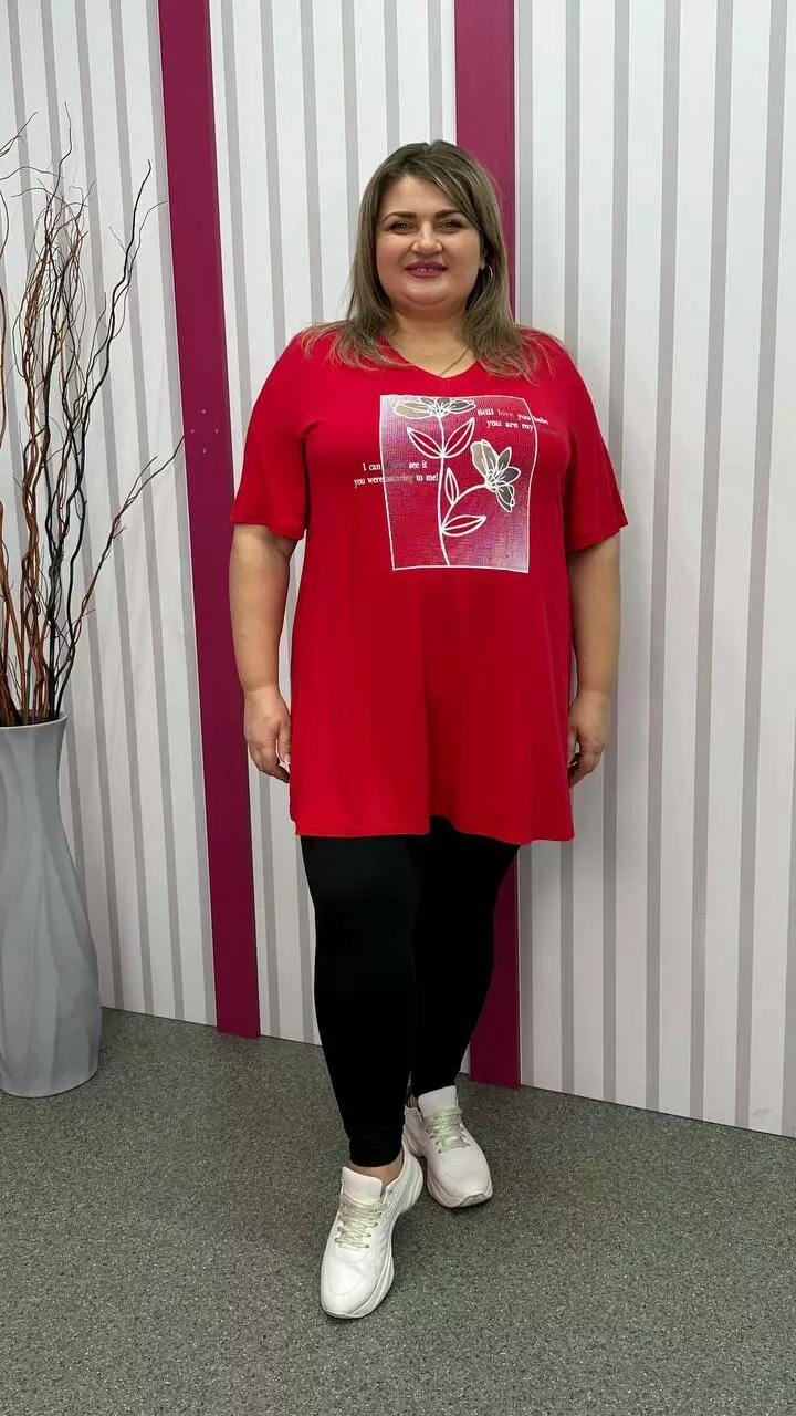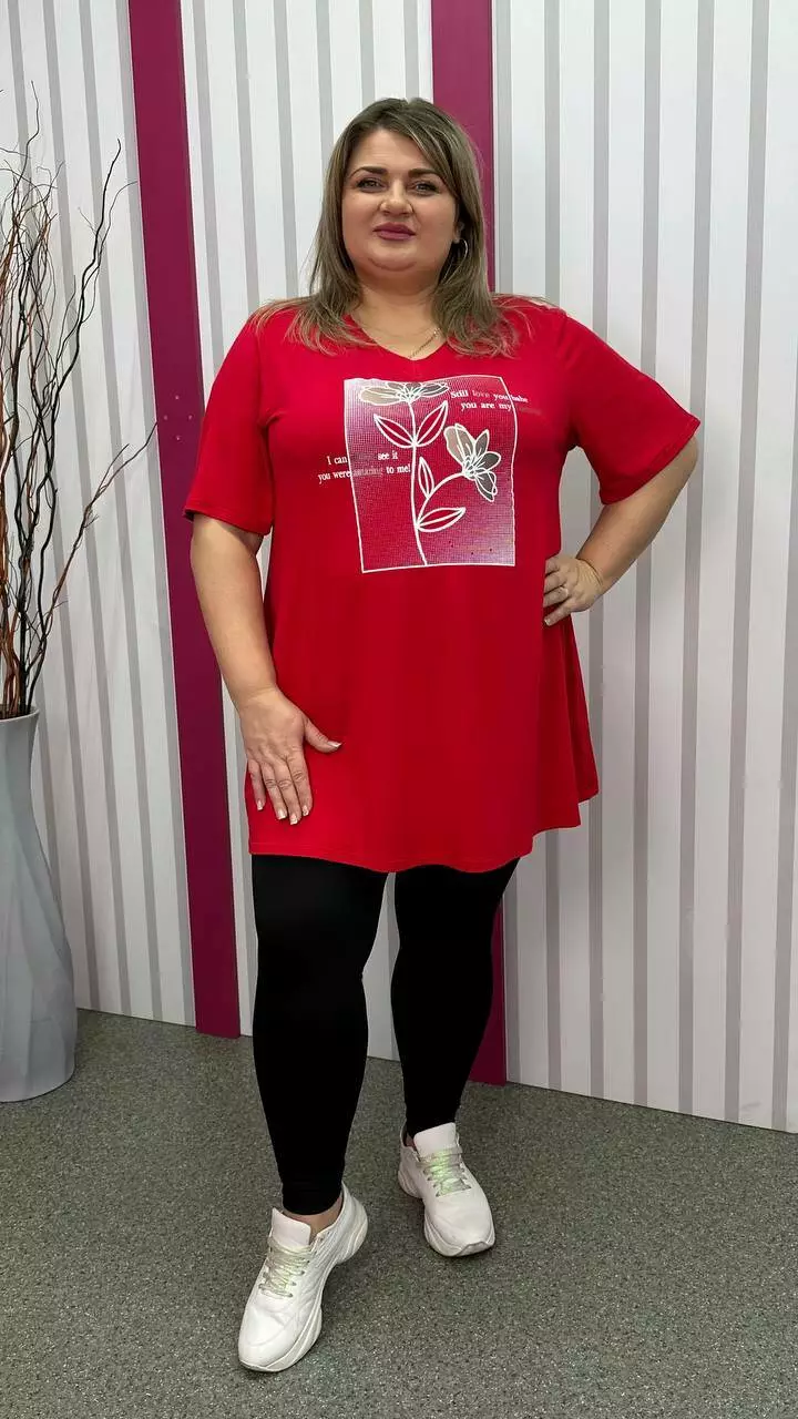 Подовжена Футболка силует трапеція "Мисік" червона великого розміру 58-60 62-64 66-68 70-72 74-76