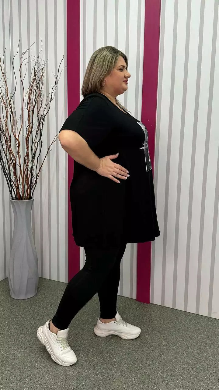 Подовжена Футболка силует трапеція "Мисік" чорна великого розміру 58-60 62-64 66-68 70-72 74-76