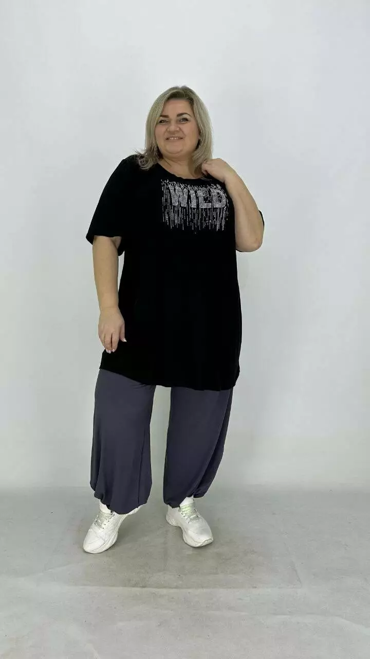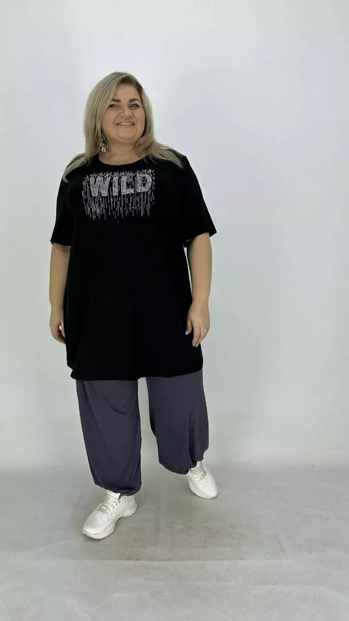 Подовжена, клешена футболка з трикотажу, віскоза п-ва Туреччини з дуже гарною розтяжністю, прикрашена якісним накатом.