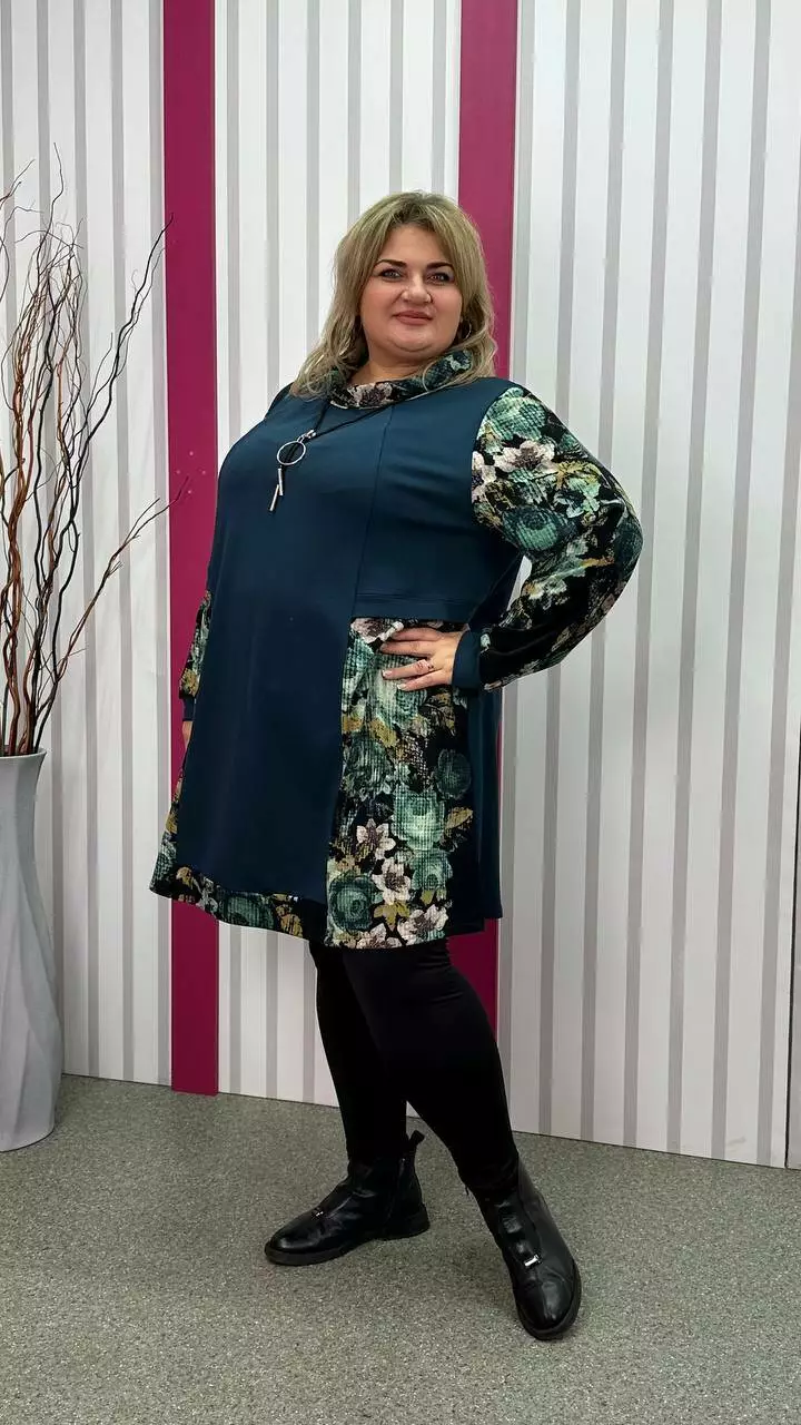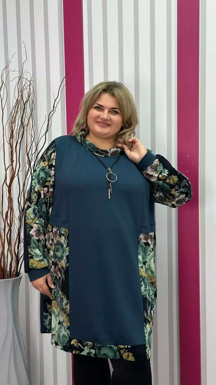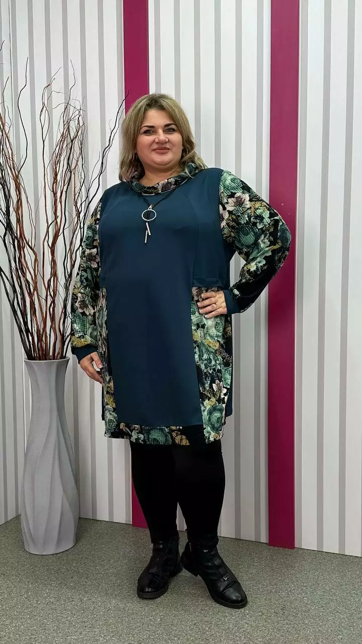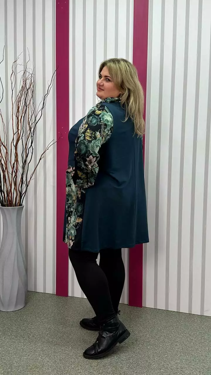 Комбінована туніка з двонитки, вставки з ангори, трапеція