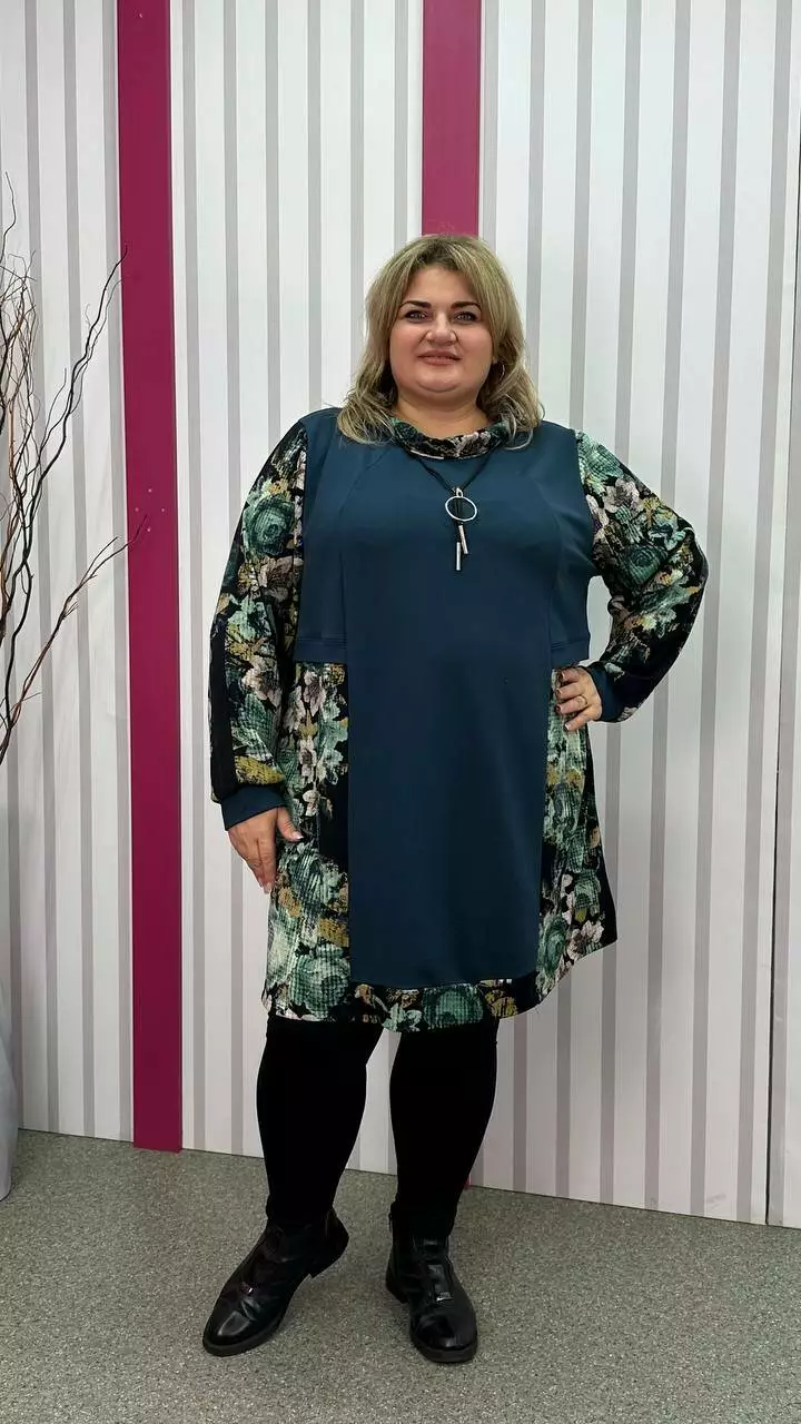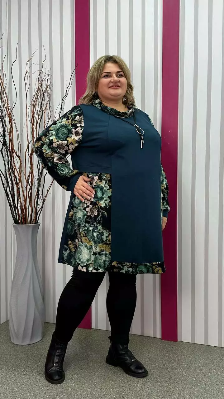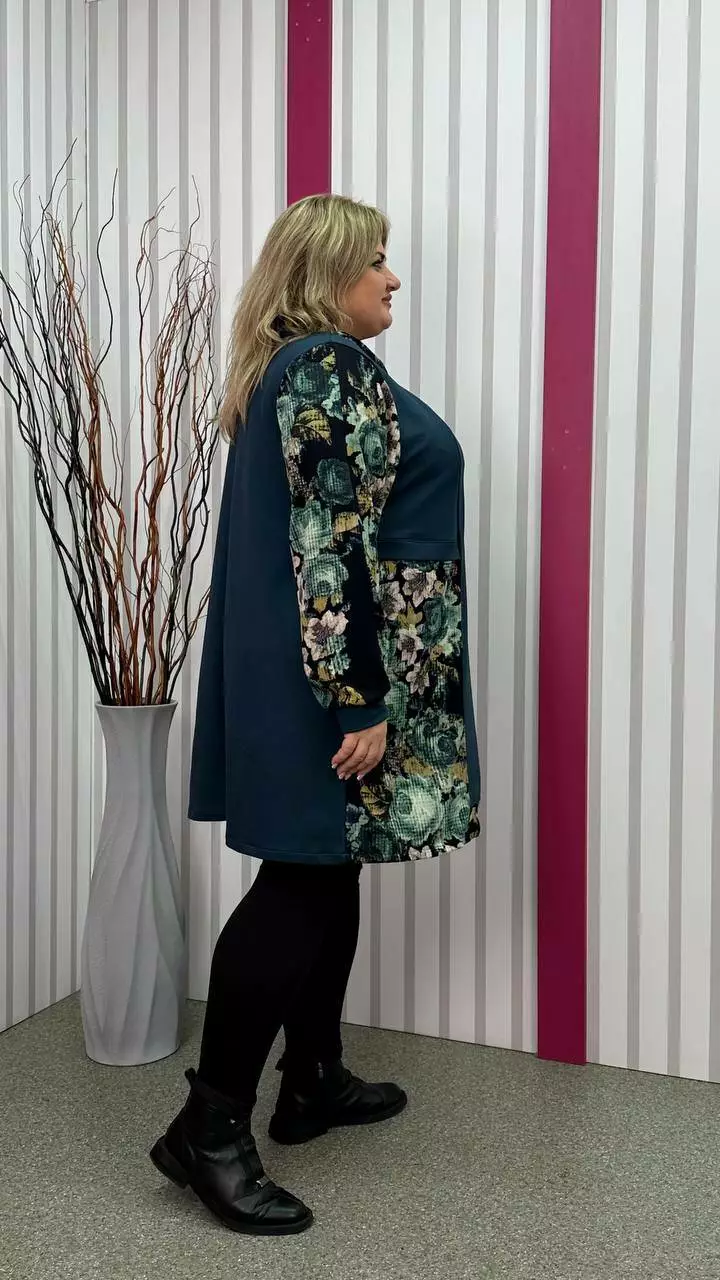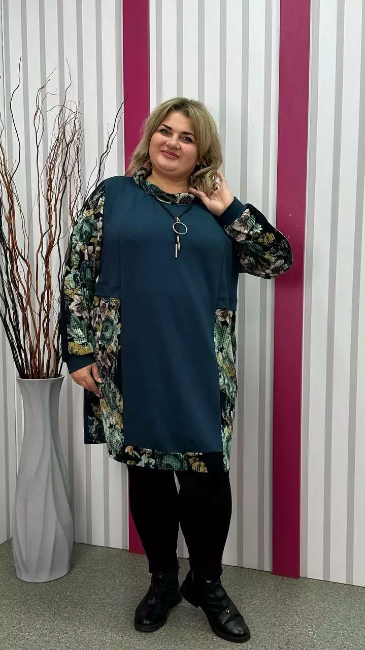 Комбінована туніка з двонитки, вставки з ангори, трапеція