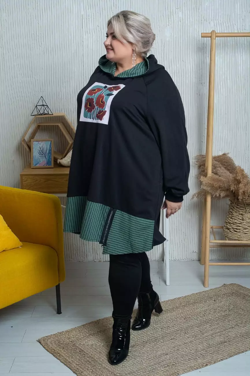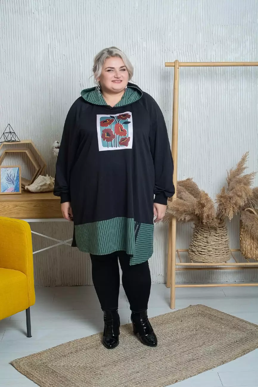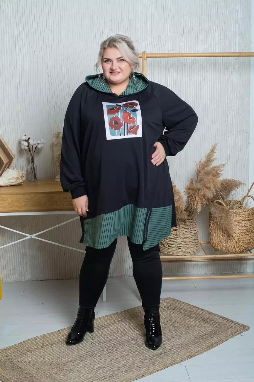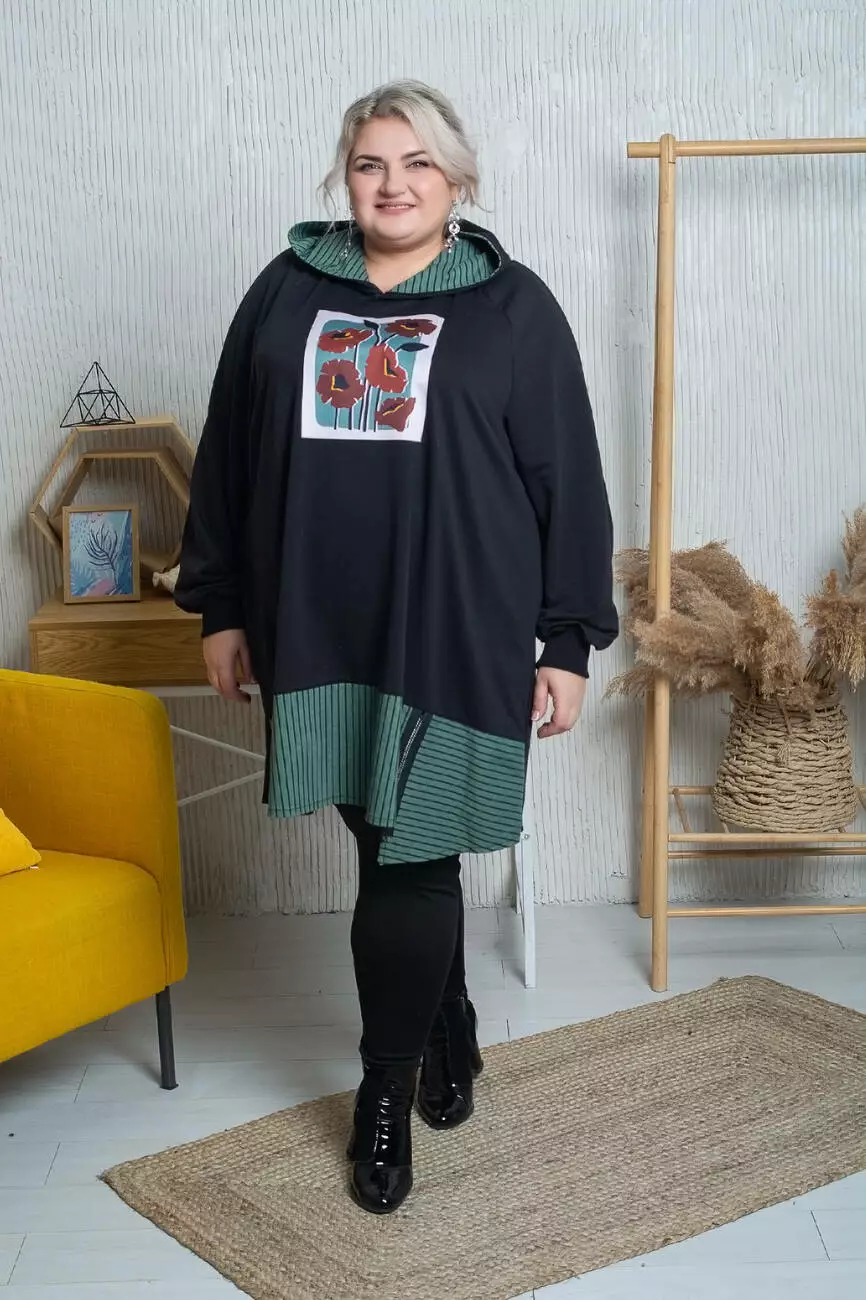Подовжена туніка-трапеція з капюшоном