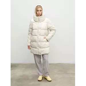 Елегантна подовжена зимова куртка у молочному кольорі, створена