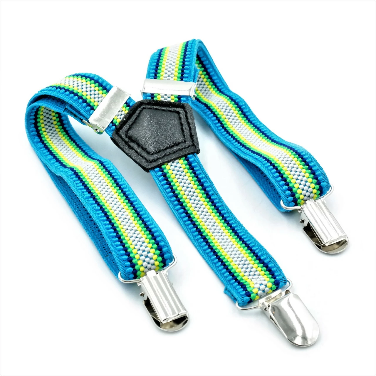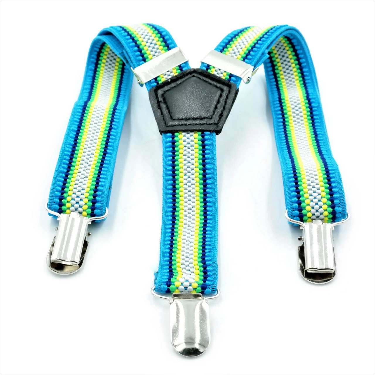 Детские подтяжки Y-образной формы. Застегиваются с помощью металических зажимов. Ширина 2,5 см. Длина на рост от 62 до 110 см. Есть возможность регулировки.