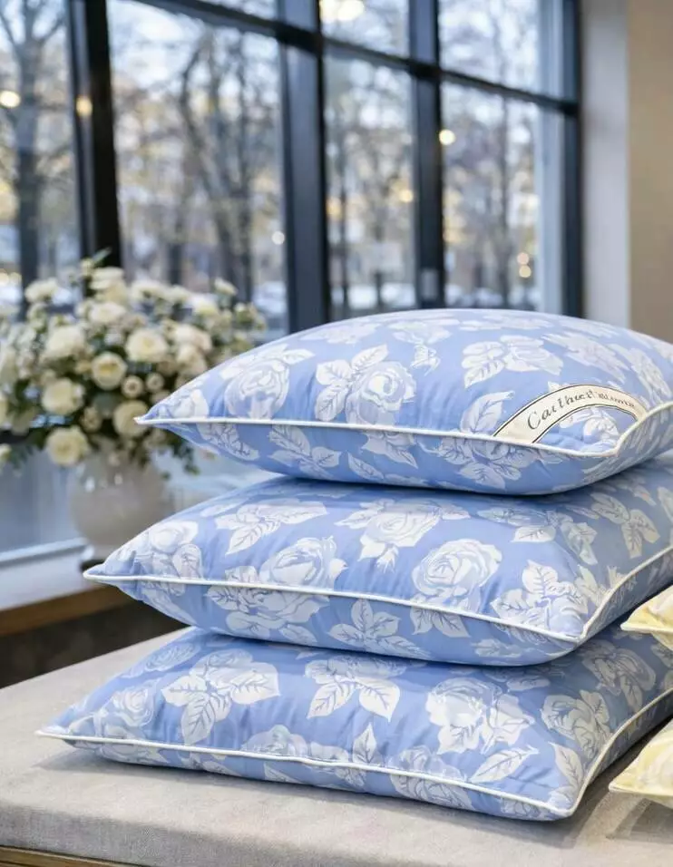 Подушка має збалансовану пружність: вона достатньо м’яка для комфортного відпочинку, але водночас добре тримає форму, забезпечуючи правильну підтримку під час сну. Це універсальний варіант, який підходить для щоденного використання в будь-яку пору року.
