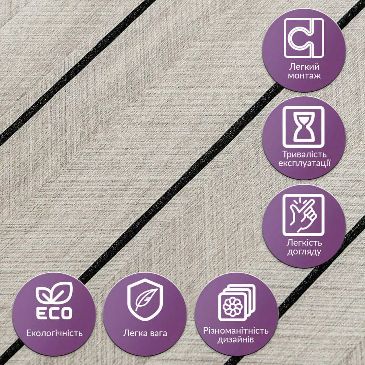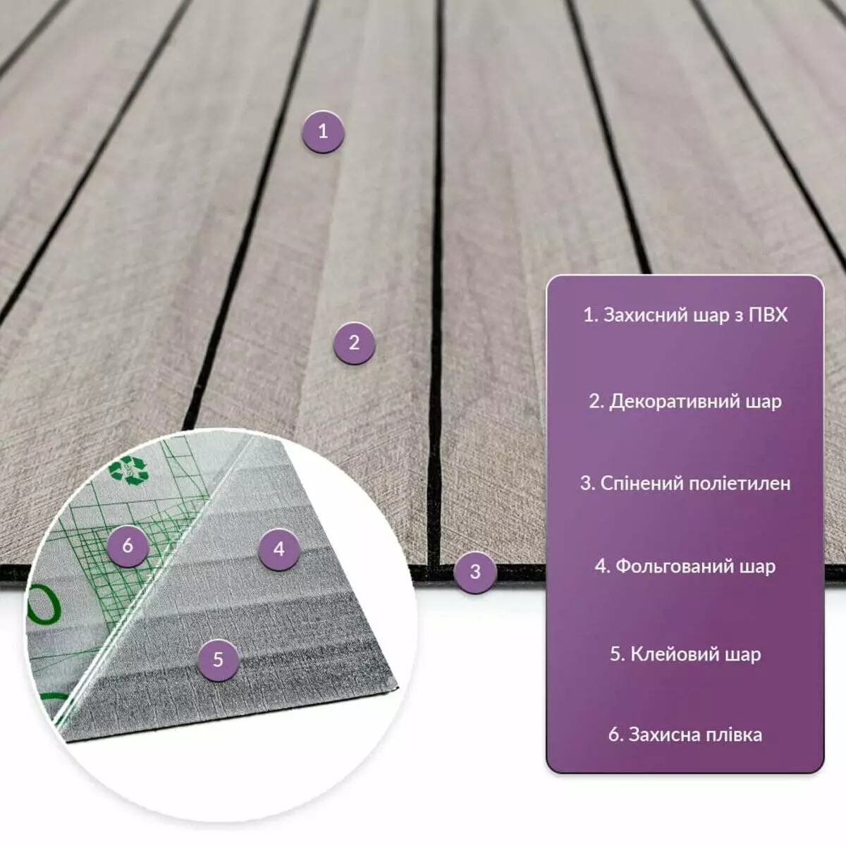 - Легка установка: Завдяки клейовому шару монтаж вінілових рейок