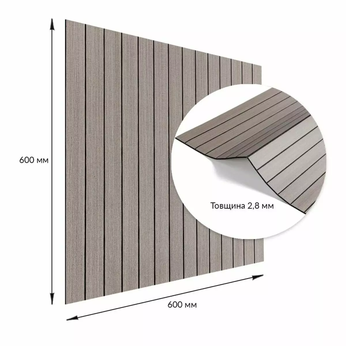Площа покриття: 600х600 – 0,36 м², 600х3000 мм – 1,8 м²