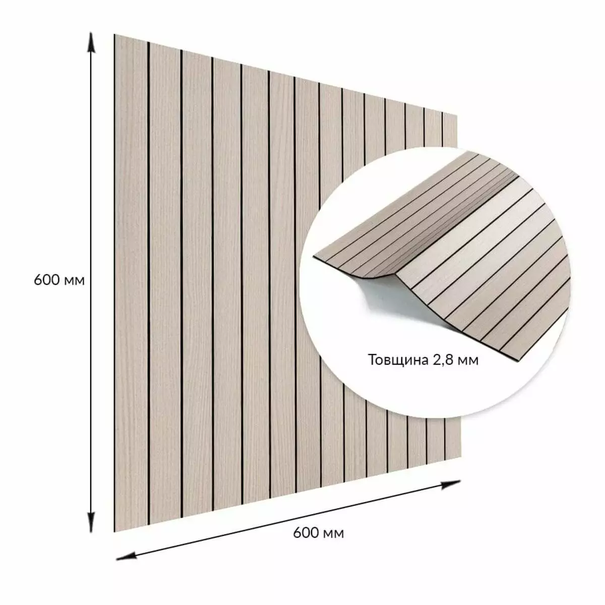 Площа покриття: 600х600 – 0,36 м², 600х3000 мм – 1,8 м²