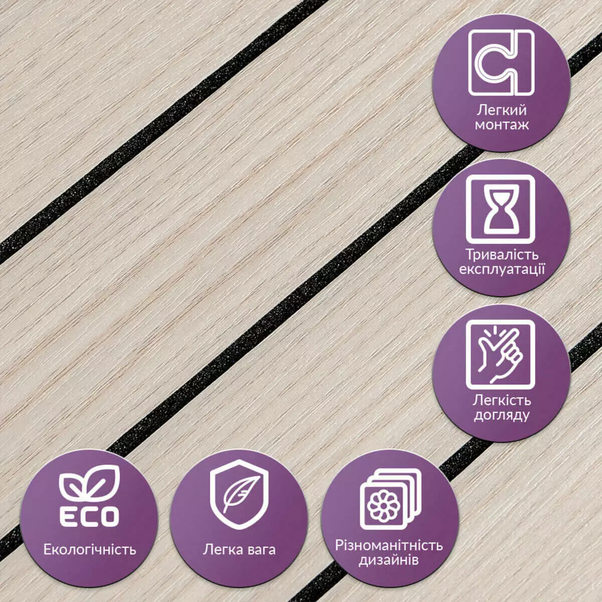 • Легкий догляд: Вінілові рейки легко миються, не вимагають спеціальних засобів для очищення і не вбирають бруд.