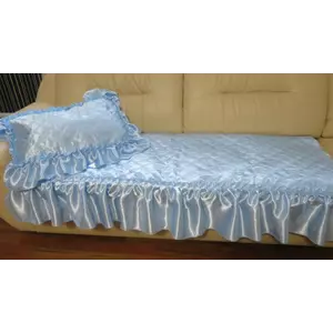 Для оформления групп в детском саду мы предлагаем красивые покрывала в детскую кроватку. Возможен пошив с одной рюшей ( как на фото) или с двумя, а также вообще без рюш ( размер 110*145). В цвет покрывала можно подобрать "накидка" на подушку.