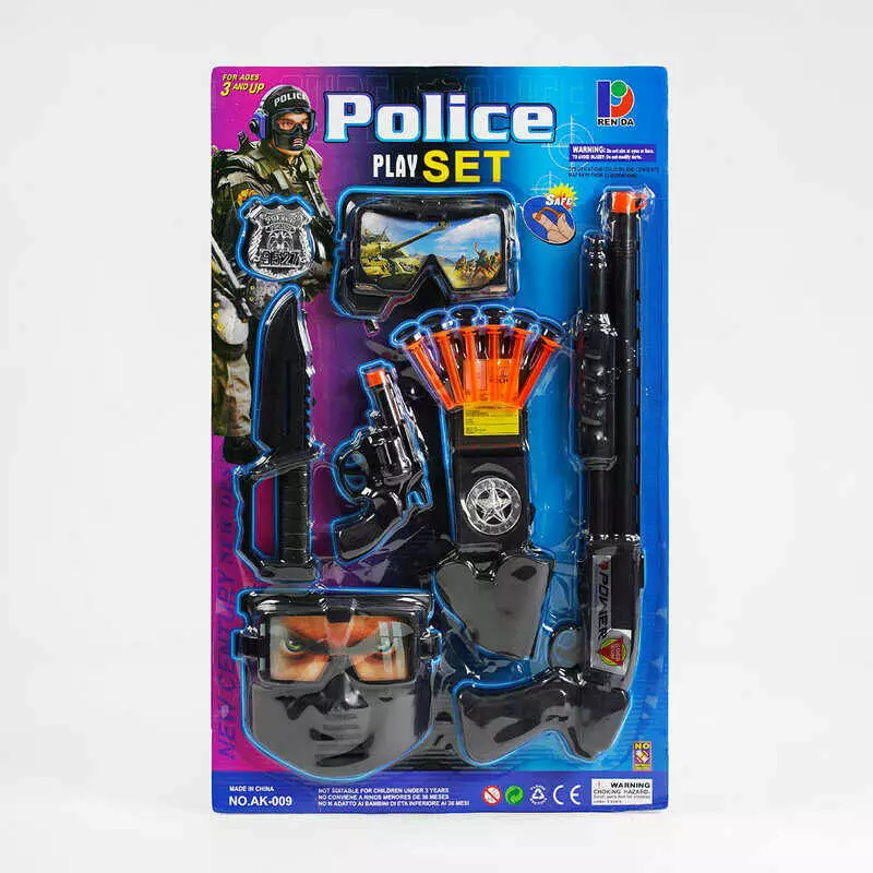 Поліцейський набір AK 009 (36/2) гвинтівка, пістолет, ніж, маска, окуляри, патрони, жетон, на листі