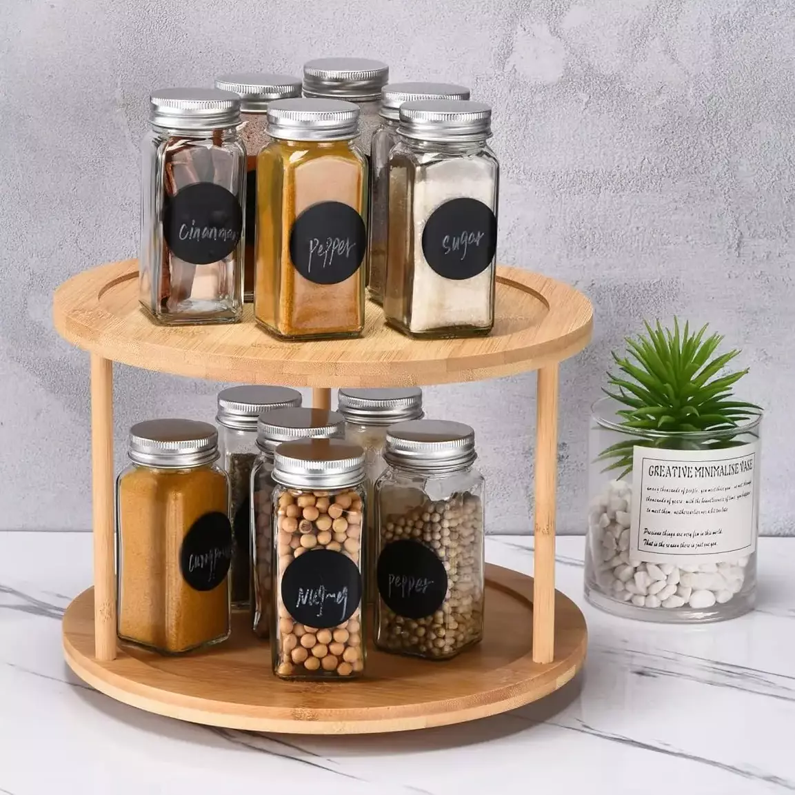 Крутящаяся двухъярусная бамбуковая полка - это идеальное решение