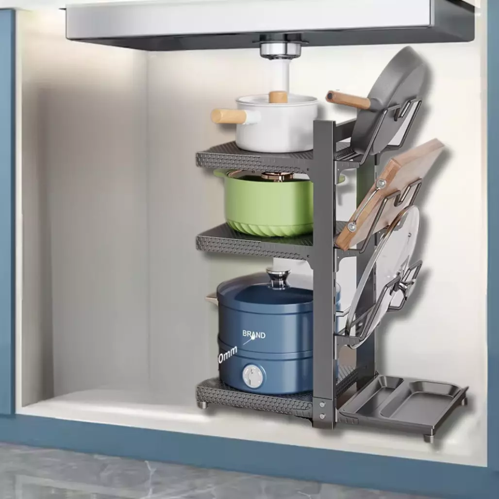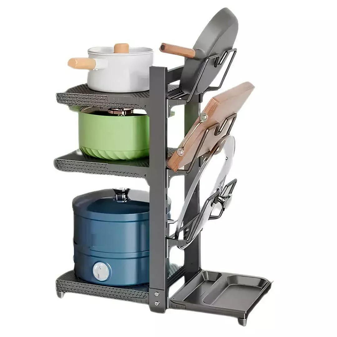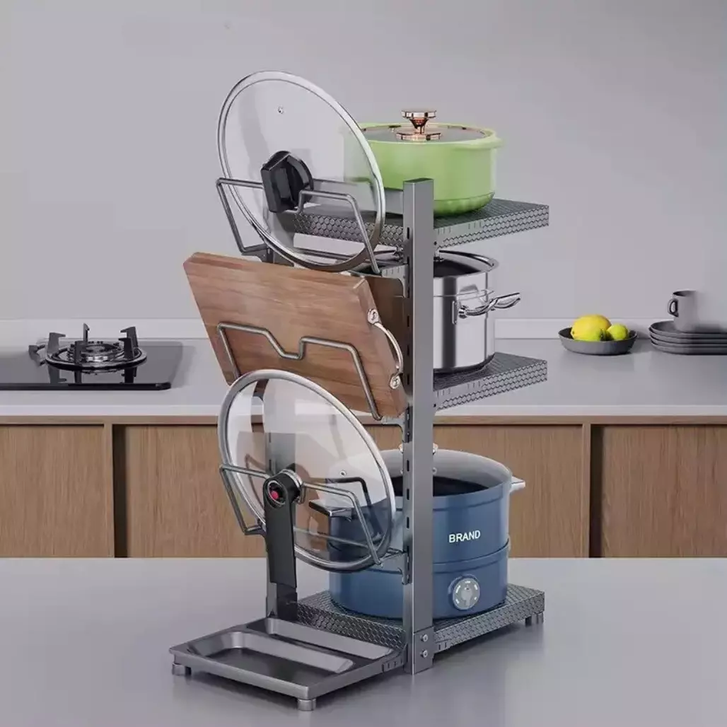 Кухонная полка на 3 уровня с держателями для крышек — это