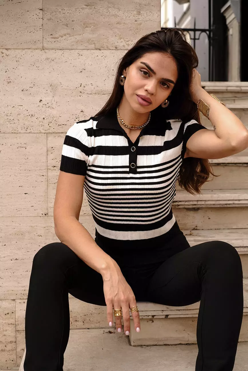 Поло жіноче у смужку чорне з білим