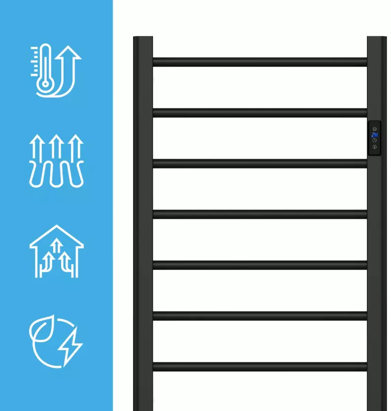 Панель управления разработана таким образом, чтобы сделать управление прибором простым и интуитивно понятным, предоставляя вам полный контроль над тепловым комфортом в ванной комнате.