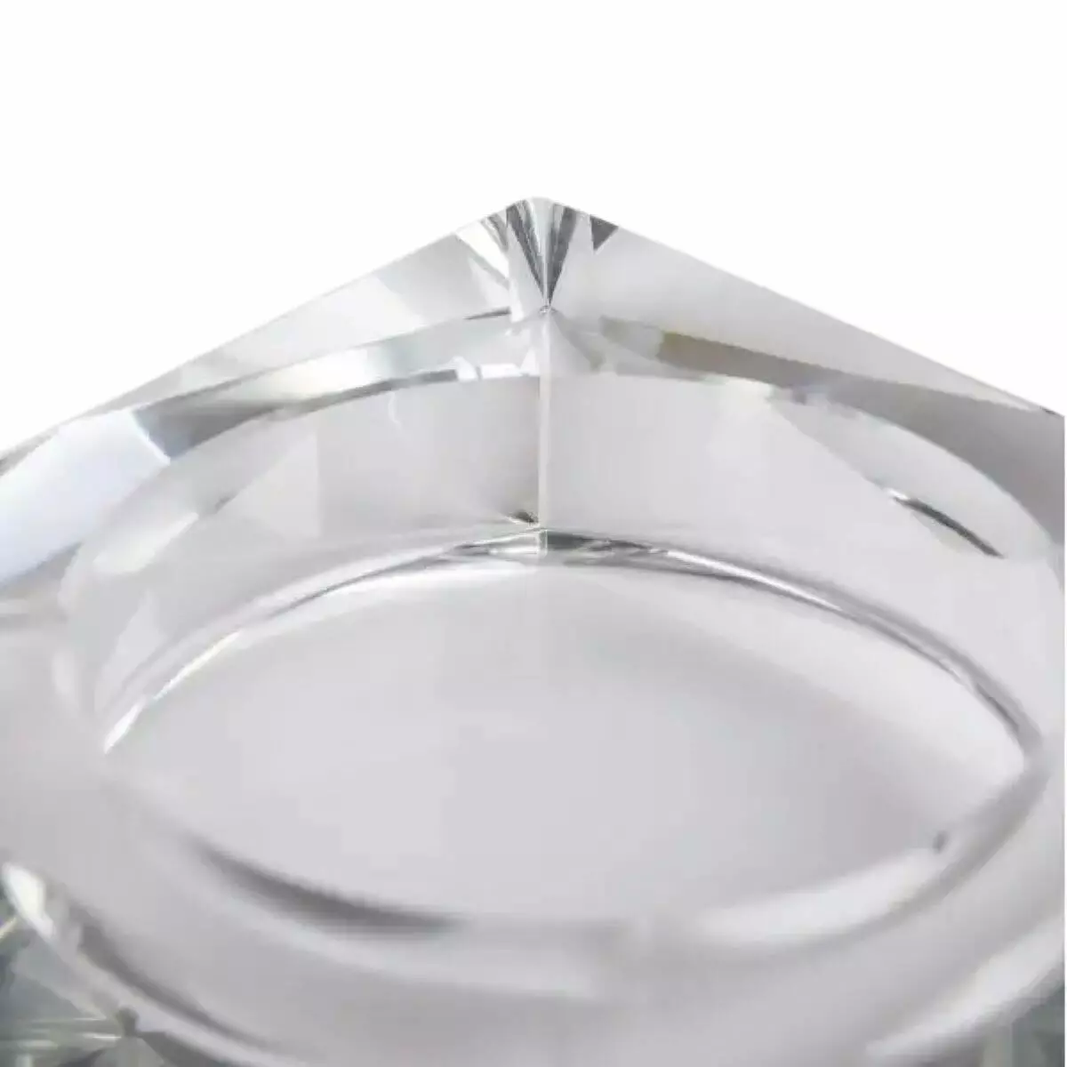 Внутрішній круглий отвір діаметром 9.5 см зручно вміщує золу та недопалки, а важка основа вагою 1.4 кг запобігає випадковому перекиданню. Поверхня легко очищується від залишків тютюнових виробів, зберігаючи прозорий зовнішній вигляд. Виріб не має гострих країв і може використовуватися в різних інтер’єрах — від домашнього до професійного.