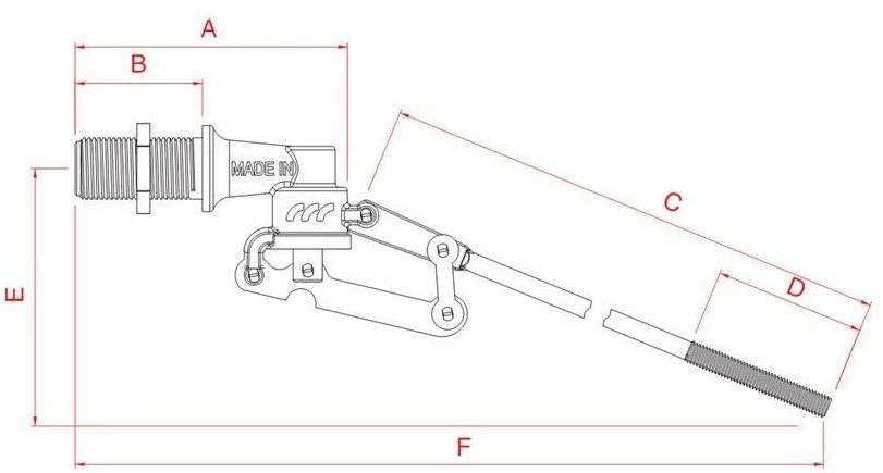 Поплавковий клапан з різьбовим з'єднанням 1/2 дюйма призначений для автоматичного регулювання рівня рідини в баках і резервуарах зберігання води. Підходить для баків середніх і великих розмірів. Поплавковий клапан з нікельованої латуні і оснащений стрижнем довжиною 175 мм для приєднання поплавця діаметр 90 мм (куля – пластик, кріплення - нержавіюча сталь) за допомогою повзункового кріплення.