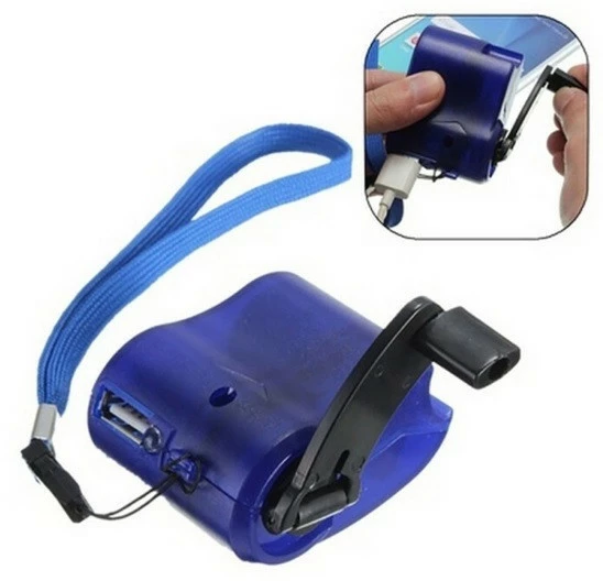 Портативна механічна динамо-зарядка для телефона, ліхтарика і Power bank! синя.