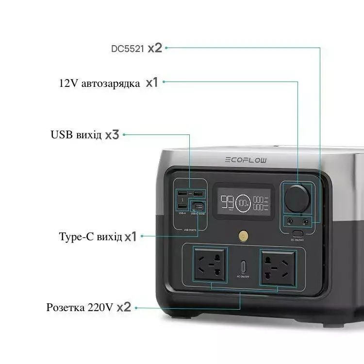 Комплектація: RIVER 2 Max, кабель для зарядки від джерела змінного