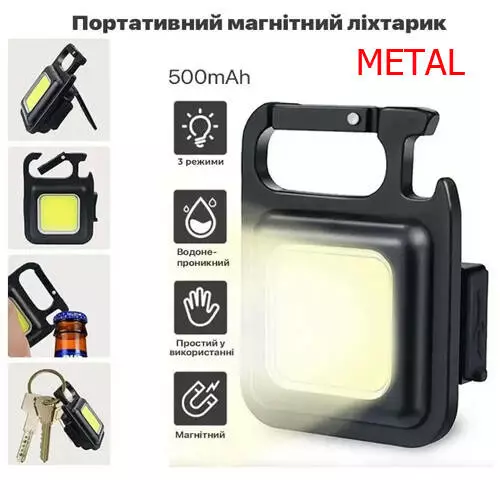 Портативный Магнитный Фонарик METAL (500mAh, COB диод)