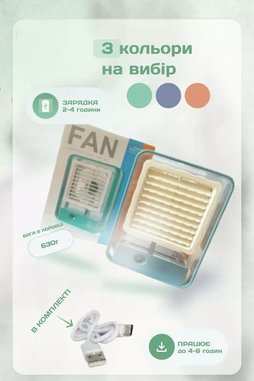 Портативный usb мини кондиционер Light Fan увлажнитель вентилятор с подсветкой 3в1 на аккумуляторе (Green)