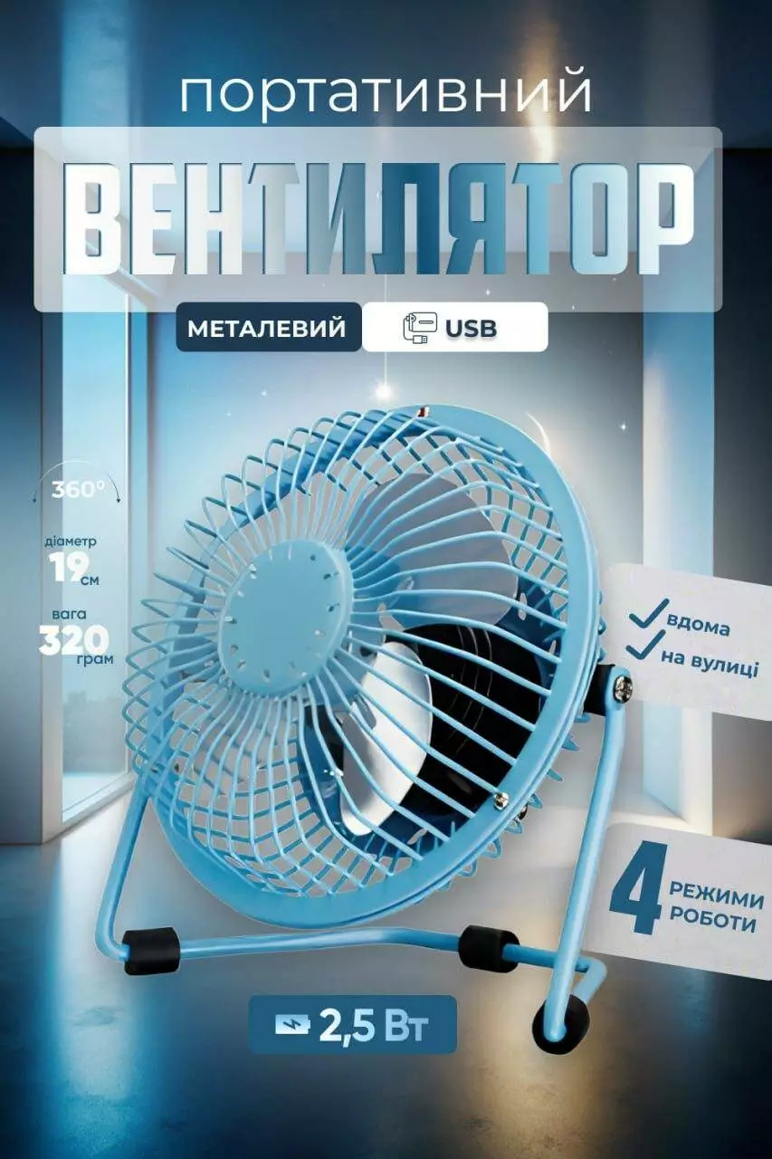 Портативный мини вентилятор usb KMT style железный настольный охладитель воздуха мобильный (Синий)