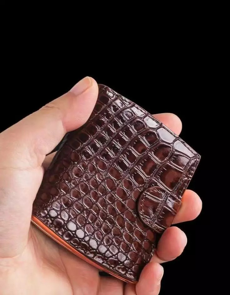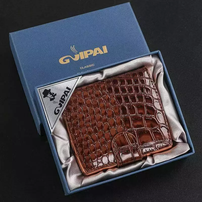 Элегантный и стильный аксессуар для хранения сигарет. Корпус выполнен из прочного металла, а обложка имеет декоративное покрытие с тиснением под кожу крокодила, что придаёт изделию роскошный и солидный вид. Надёжная защёлка обеспечивает удобное и безопасное закрытие.