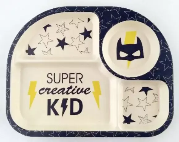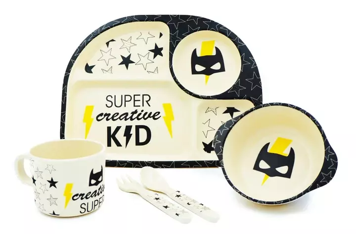 Набір дитячого бамбукового посуду MH-2773-1 бетмен, 5 предметів У пошуках дитячого набору, який задовольнить вас своєю якістю та не токсичністю, а дитину – гарним малюнком? Тоді варто звернути увагу на цей варіант. Набір дитячого бамбукового посуду MH-2773-1 складається з 5 предметів: ложка, вилка, глибока тарілка, тарілка з 4-ма секціями та чашка. Все, що потрібно для організації повноцінного харчування малюка. Дитячий посуд виготовлений з бамбукової фібри, яка не містить ніяких несприятливих чи шкідливих для дитини речовин. Це абсолютно безпечний, екологічно чистий, ультрасучасний рослинний матеріал (бамбукове листя, пагони, кора, змішані з деревиною та кукурудзяним крохмалем). Ще одна перевага цього бамбукового посуду в тому, що він дуже приємний на дотик, але при цьому не ковзає. Набір дитячого бамбукового посуду MH-2773-1: безпечні та екологічно чисті матеріали приємний дитячий дизайн підходить для посудомийних машин не ковзає Комплект нешкідливого посуду виконаний у дуже гарному, яскравому дизайні, який підвищить настрій дитині та покращить її апетит. Посуд з бамбука не можна розігрівати в мікрохвильовій печі. Температура використання коливається від -20 до +70°С. Максимальний час використання за температури +70°С – 2 години. Посуд дитячий з малюнками зробить прийом їжі для вашого малюка захоплюючим заняттям!