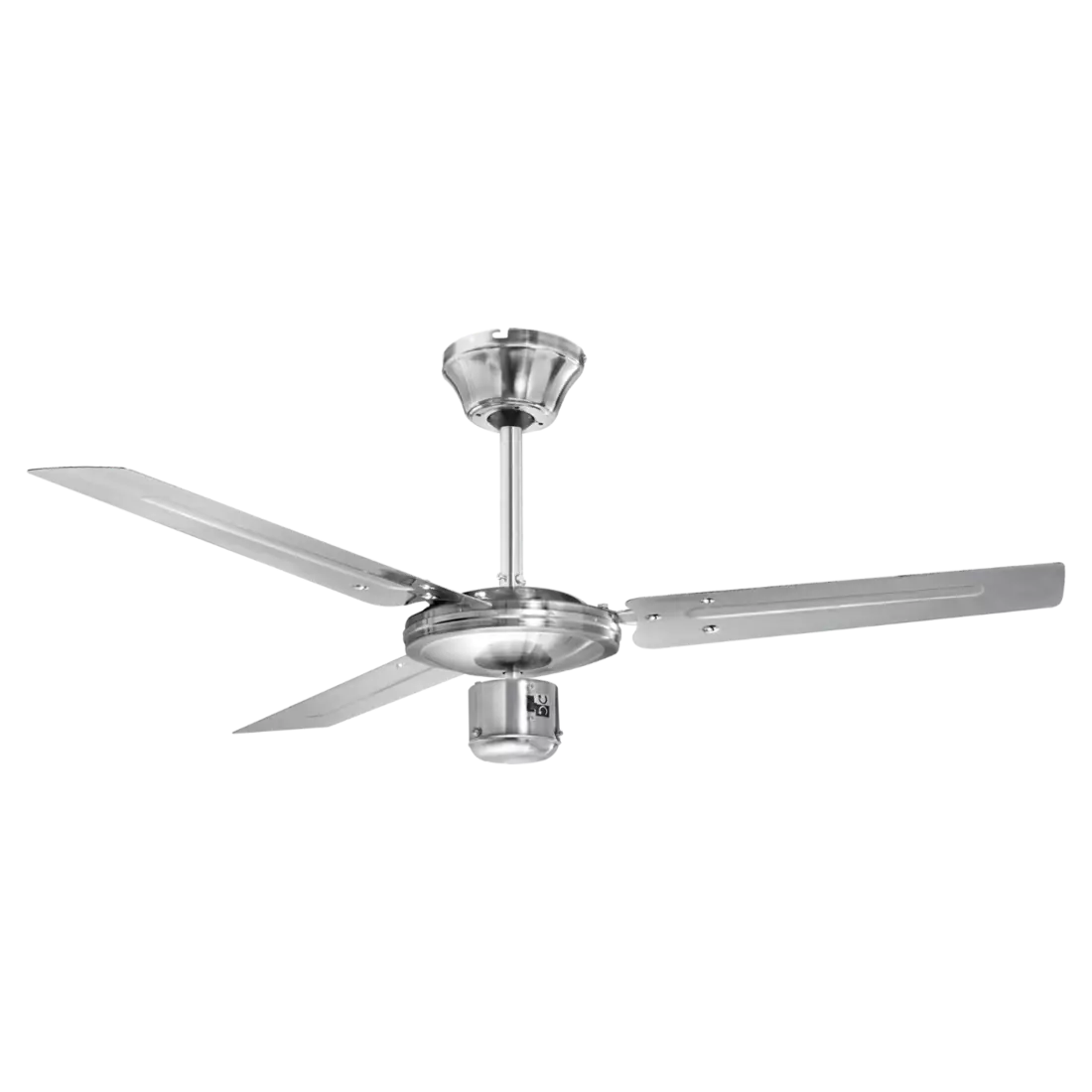 Корпус та крила виконані з міцного металу. Стельовий вентилятор також відрізняється високоякісним дизайном із нержавіючої сталі.
