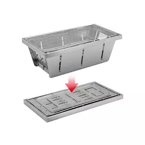 Портативний гриль сталевий. Матеріал в складі-матова нержавіюча сталь. Ультратонкий корпус, сітка для гриля для харчових продуктів. При створенні виробу застосовували захищену від іржі сталь марки 304, а також корозійностійку сталь марки 201. Гриль важить 2,1 кілограма. Розміри складових частин гриля: 23*33,5 см; 18,5*27,5 см; 25*36 см; 18*28 см. розміри сумки для зберігання моделі: 25 * 36 см.