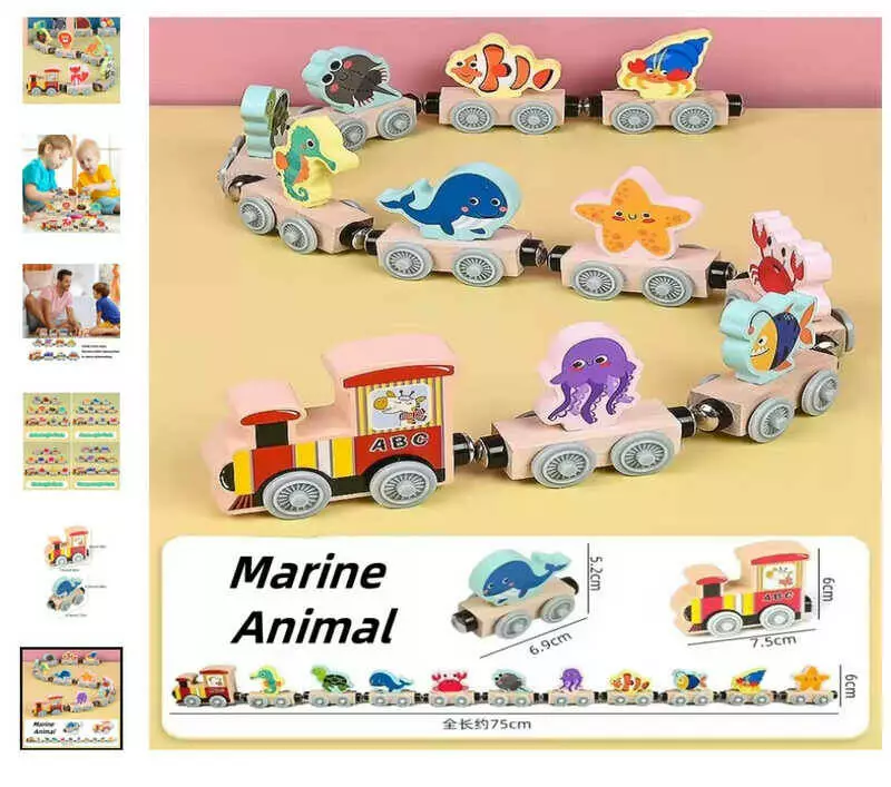 Потяг магнітний C 73283 (40) “Жителі океану”, дерев`яний, в коробці