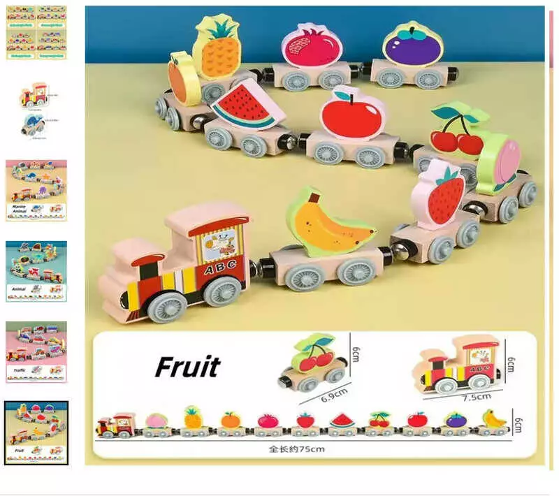 Потяг магнітний C 73285 (40) “Фрукти”, дерев`яний, в коробці