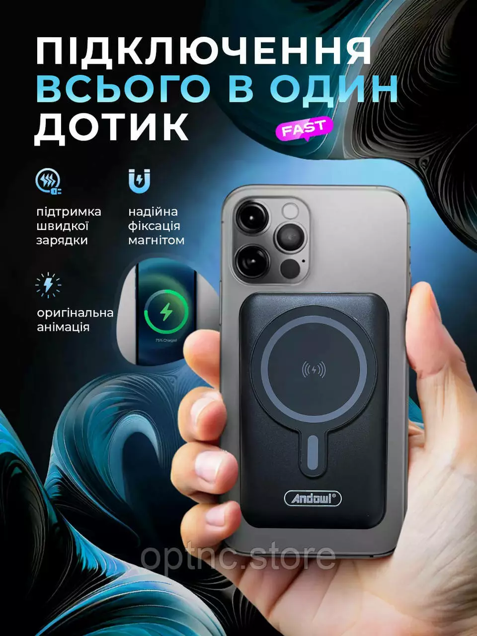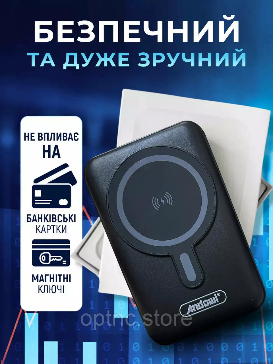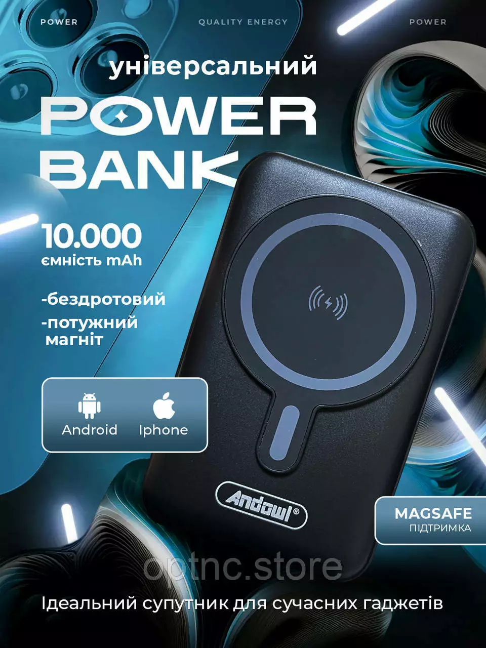 Повербанк с магсейфом 10000 mAh power bank magsafe 3 выхода Andowl портативный (Чёрный)