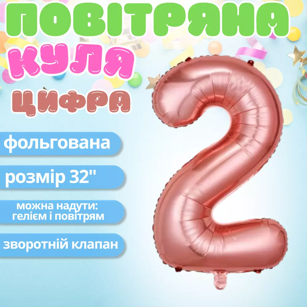 Фольгована куля у формі цифри «2» кольору рожеве золото - стильна
