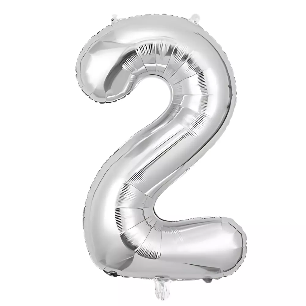Фольгована кулька у формі цифри «2» срібного кольору — ідеальний