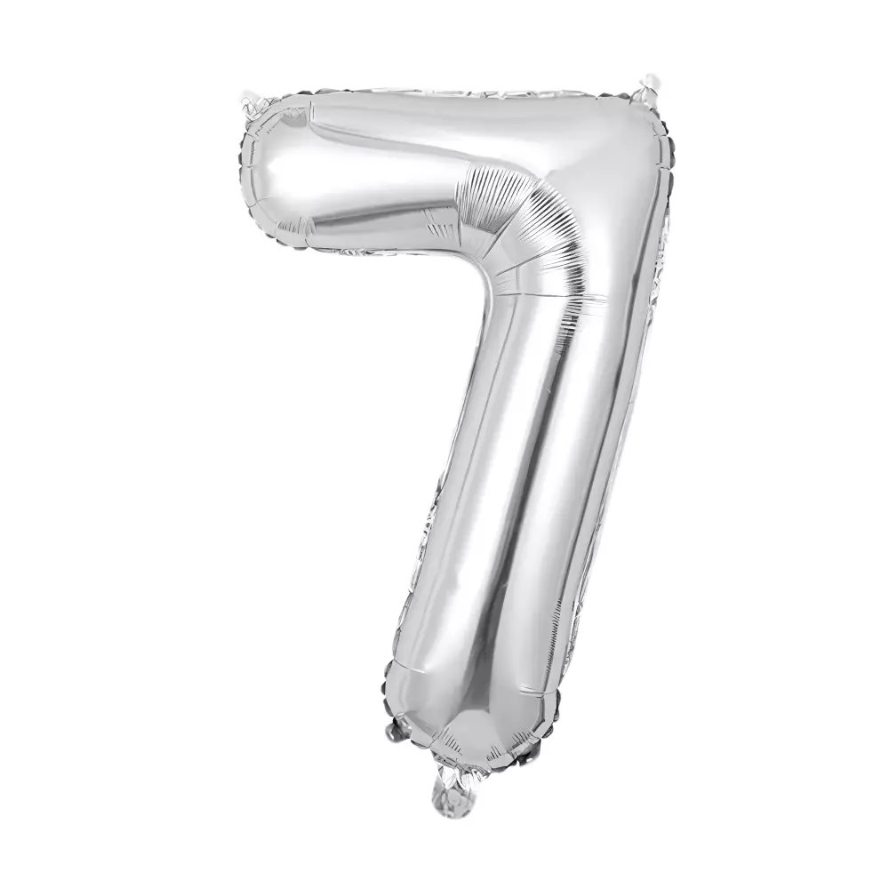 Фольгована повітряна куля у формі цифри «7» сріблястого кольору -