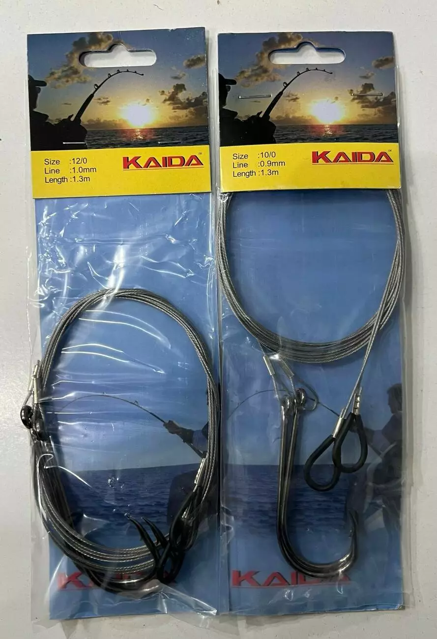 Сталевий поводок KAIDA призначений для трофейної та морської риболовлі. Виготовлений із міцного сталевого троса, стійкий до перегризання та великих навантажень. Оснащений потужним трійним гачком і надійною петлею для швидкого та зручного монтажу. Підходить для ловлі великої хижої риби.