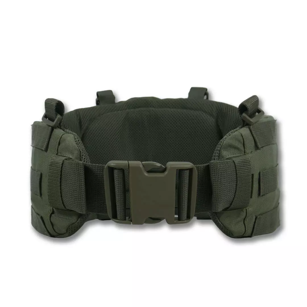 На боковых частях три ряда системы MOLLE для крепления подсумков или дополнительного снаряжения. Задняя часть увеличена и выполнена с 4-мя рядами MOLLE, что позволяет максимально снарядить пояс необходимым снаряжением. Регулировка пояса происходит в 2 стороны благодаря специальному двухщелевому фастексу WJ, и скрытым двухщелям в самом поясе.