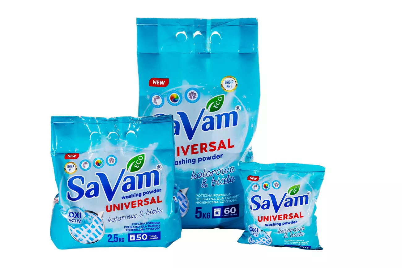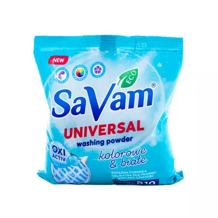 Пральний порошок SaVam Universal -універсальний засіб для ефективного прання як кольорових, так і білих ткани.Підходить для ручного та машинного прання при будь-яких температурах.Не залишає розводів, добре виполіскується та має приємний легкий аромат.